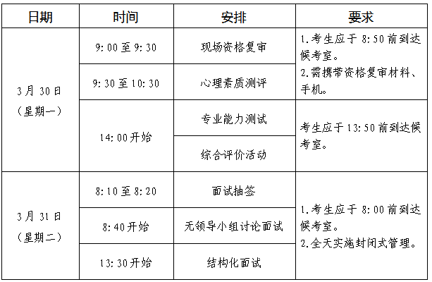 面试将于2026年3月30日至31日进行。具体安排如下。